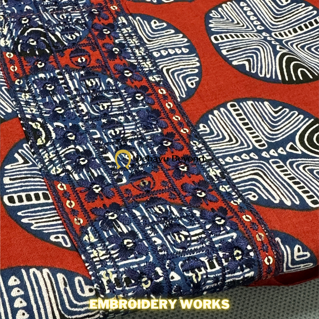 [Size XL to 4XL] Embroidered Cotton Kurti with Bottom & Dupatta Set (Malaysia Readystock)