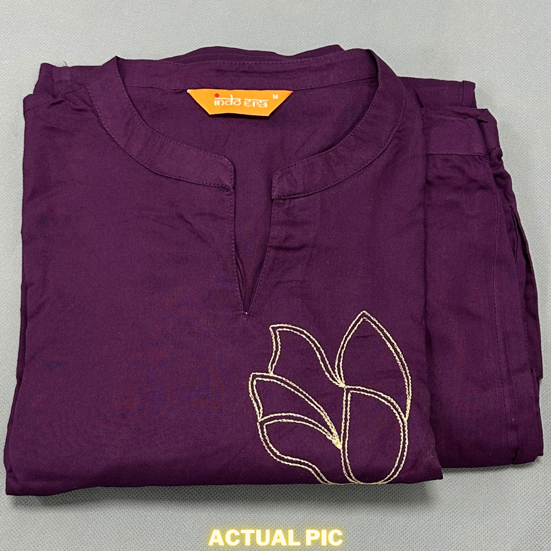 DEBAYU Viscose Rayon Kurti with Trousers Embroidered Purple Navy Blue Co-ord Set Size S to XXL Indo Malaysia