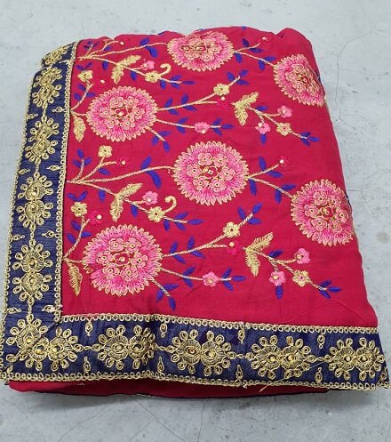Debayu Partywear Vichitra Silk Heavy Embroidered Saree with Unstitched Blouse Piece