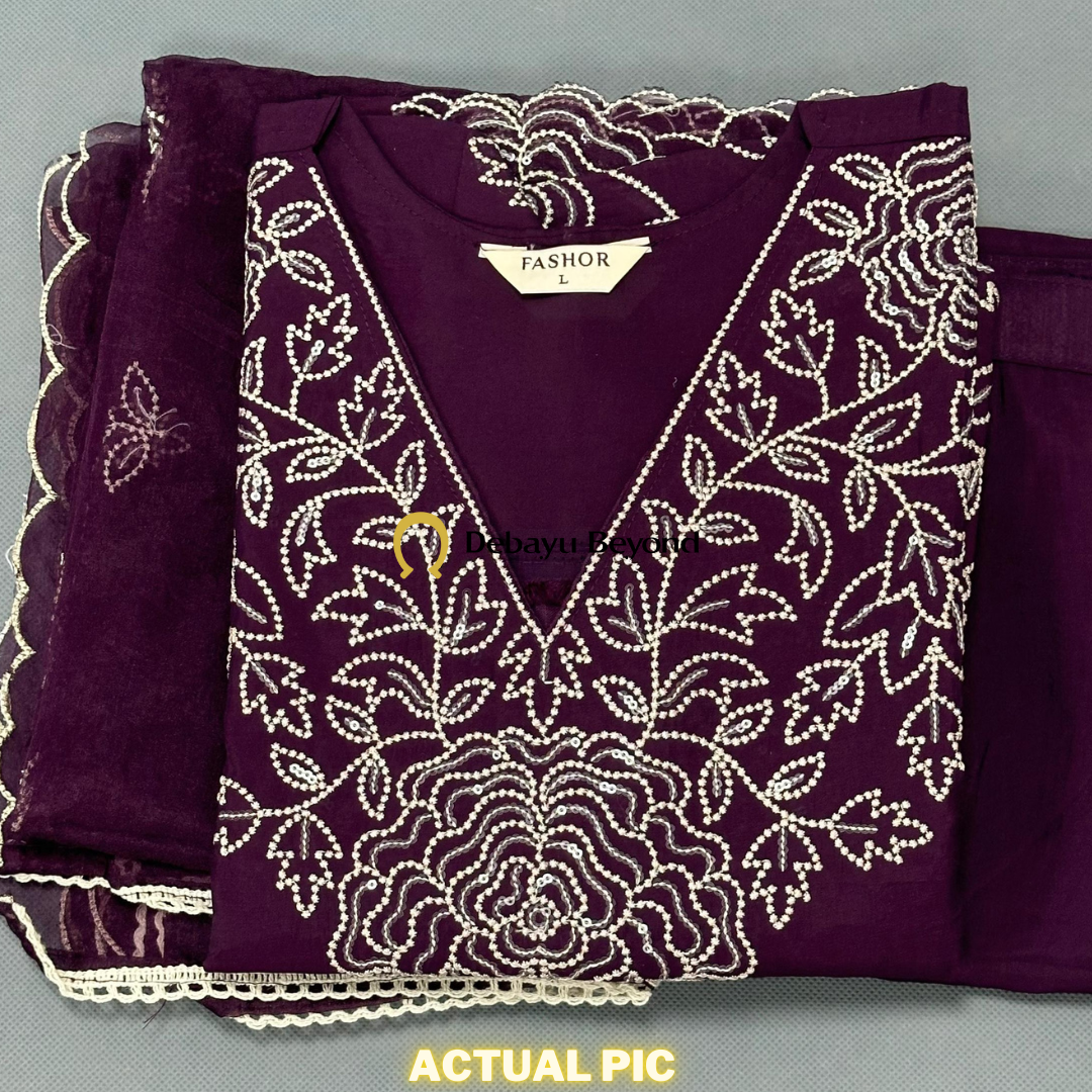 Actual Pic:COLOUR: VioletMATERIAL: Top - Muslin SilkBottom - Shantoon Dupattae - OrganzaLENGTH: Top~44" & Bottom~37"Kalau item boleh add dalam cart, memang available dan readystock di Malaysia.If the item/size can be added to your cart, it means available and readystock in Malaysia.