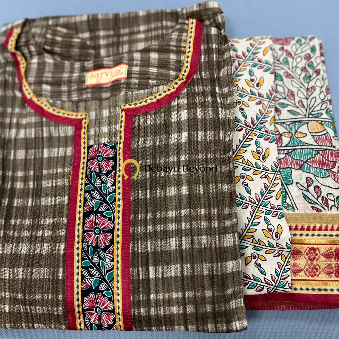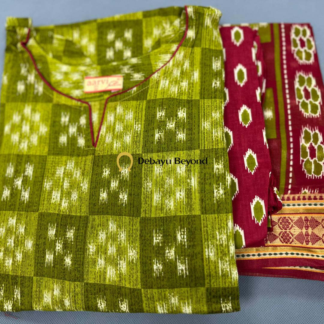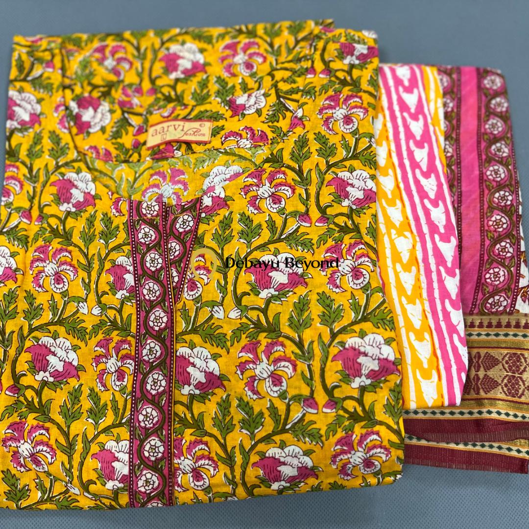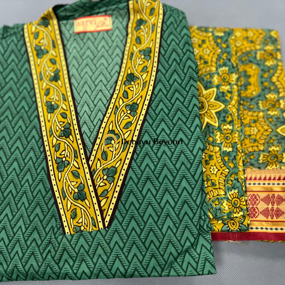 DBB [Size L to 3XL] Gadwal Border Cotton Kurta Set with Dupatta (Malaysia Readystock)