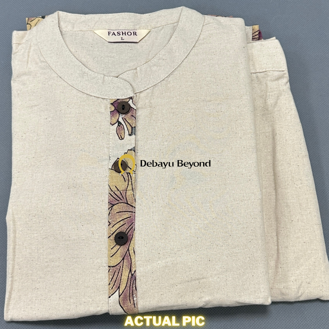 Gambar Sebenar/Actual Pic:WARNA/COLOUR: Off-WhiteBAHAN/MATERIAL: Cotton BlendLABUH/LENGTH: Top~32", Sleeve~18" & Bottom~39"Kalau item boleh add dalam cart, memang available dan readystock di Malaysia.If the item/size can be added to your cart, it means available and readystock in Malaysia.