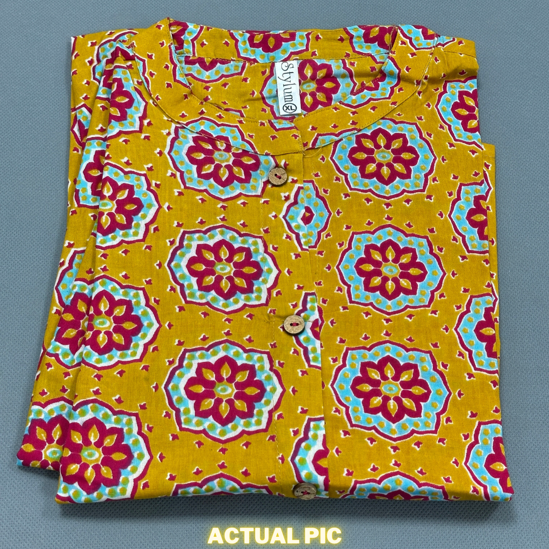 DEBAYU Cotton A-Line Kurti Ethnic Printed Top Only Size S to XXL Malaysia [TP]