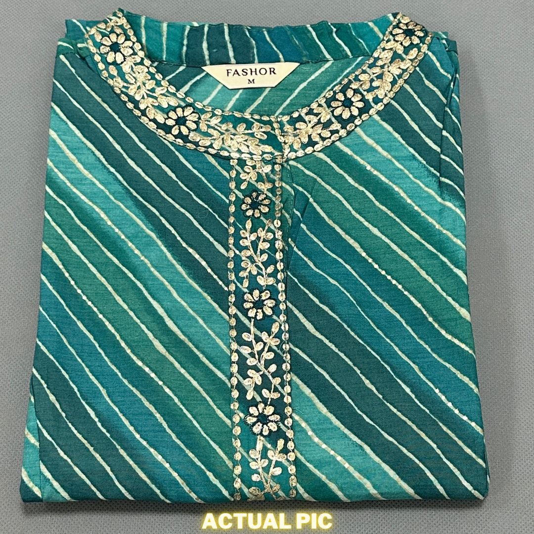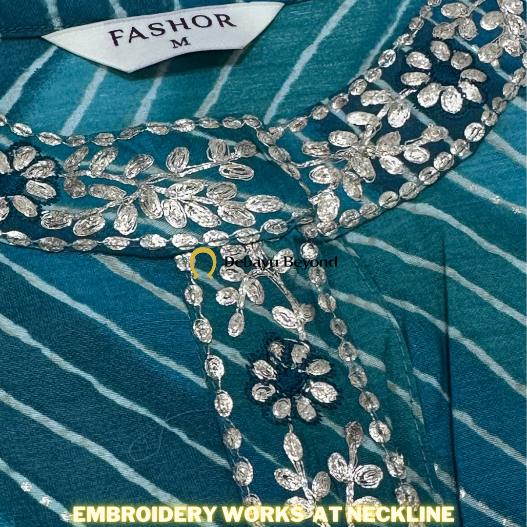 DEBAYU Silk Blend Straight Kurti Top Ethnic Leheriya Printed Embroidered Neckline Size M to 3XL Malaysia PBR